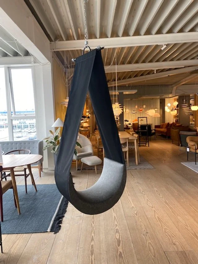 The distinct silhouette of the Dropi forms a quiet, if not playful retreat, where ambient noise is deflected and absorbed by a cascade of durable textile.